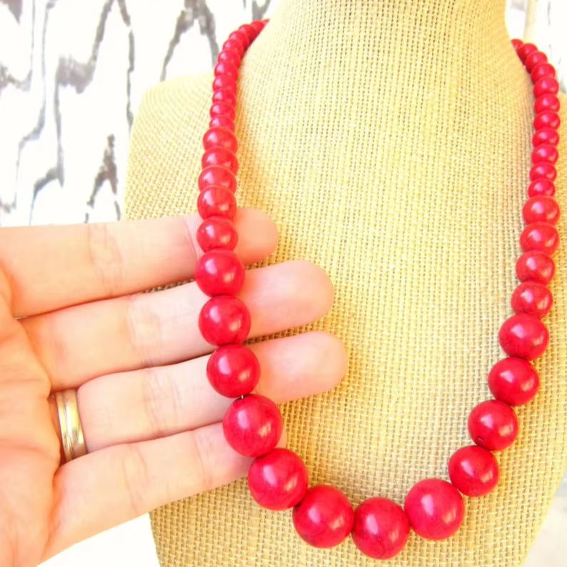 สร้อยคอลูกปัดสีแดงกุหลาบทำจากเรซิ่นคุณภาพเยี่ยมสร้อยคอสไตล์โรแมนติกปรับขนาดสีได้ตามต้องการสำหรับงานแต่งงานของผู้หญิงของขวัญงานเลี้ยง