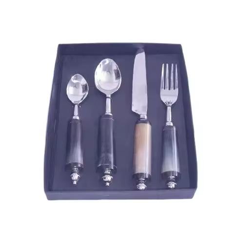 ชุดช้อนส้อมสแตนเลสคุณภาพดีเยี่ยมสีมิเรอร์ขัดเงาเป็นมิตรต่อสิ่งแวดล้อมสำหรับงานปาร์ตี้ที่ใช้