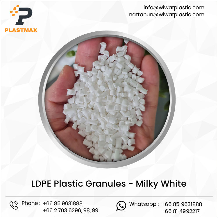เม็ดพลาสติก LDPE สีขาวนมคุณภาพเยี่ยม เกรดฟิล์มรีไซเคิล บรรจุถุง PP 25 กก. ยี่ห้อ Plastmax ขายส่งสำหรับผู้ซื้อทั่วโลก