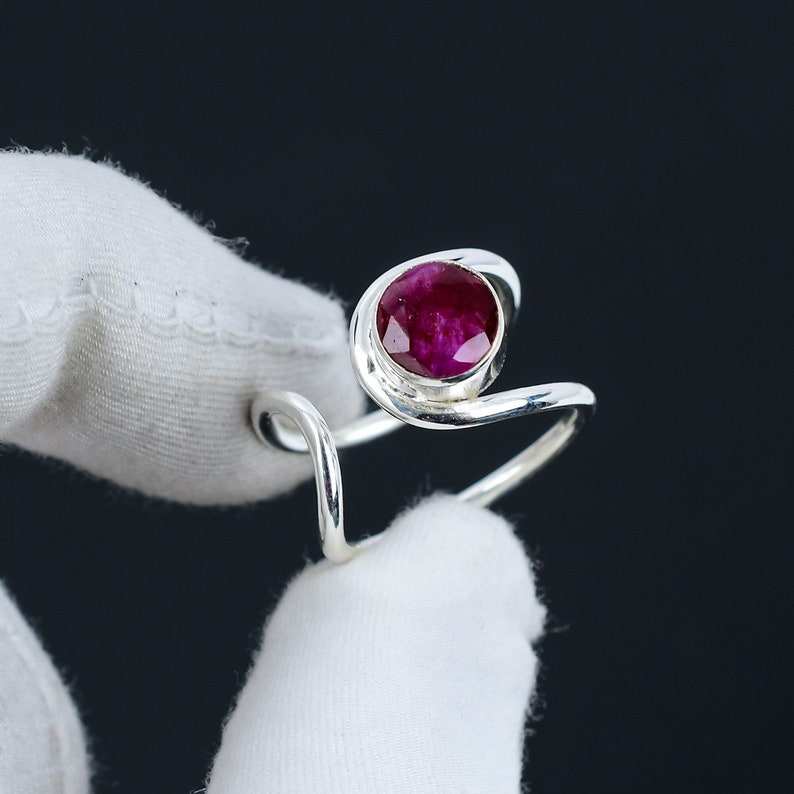 Superb Solid 925 Sterling Silver Plated Ruby Round Gemstone Bezel Setting 7mm Ring Handmade Fashion Jewelry For Women