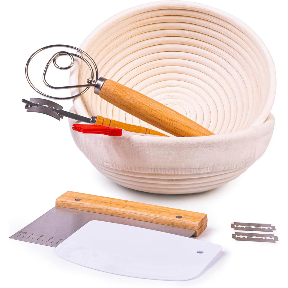 ชุดตะกร้าหวายสำหรับพักแป้งขนมปังเกรดอาหาร ยี่ห้อ Superbaking ทรงกลม ขนาด 9 นิ้ว สำหรับทำขนมปังซาวโดว์ อุปกรณ์ทำขนมปัง