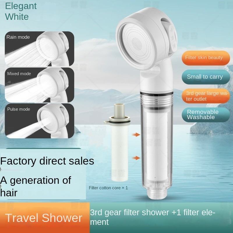 ที่กรองน้ำฝักบัวขนาดเล็กแบบพกพาได้สำหรับโรงแรมบ้านการทำให้บริสุทธิ์ในห้องน้ำการเดินทางแบบสากลหัวสเปรย์ทรงพลังสำหรับประเทศไทย