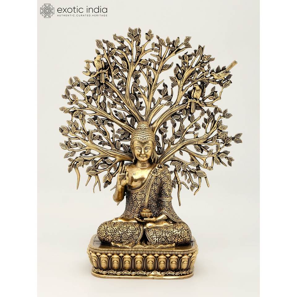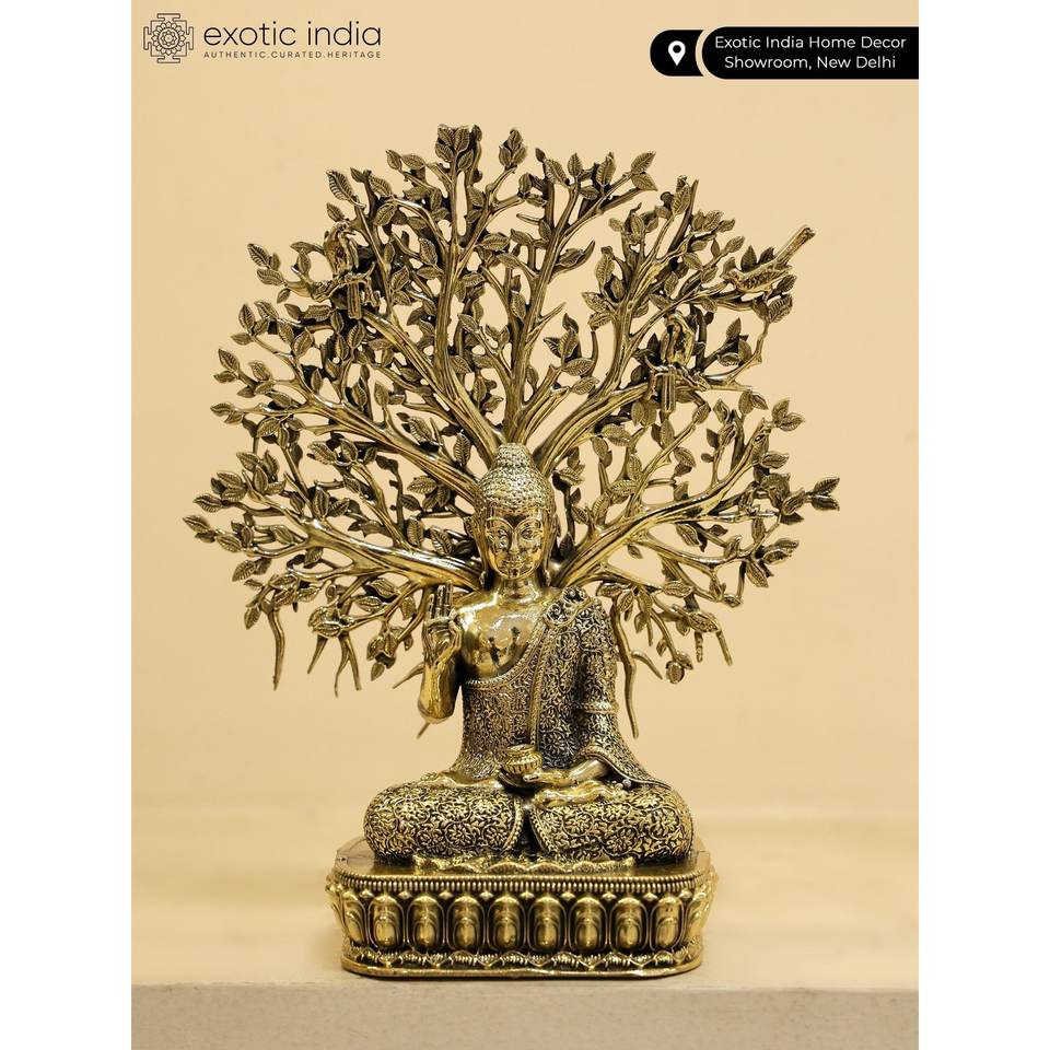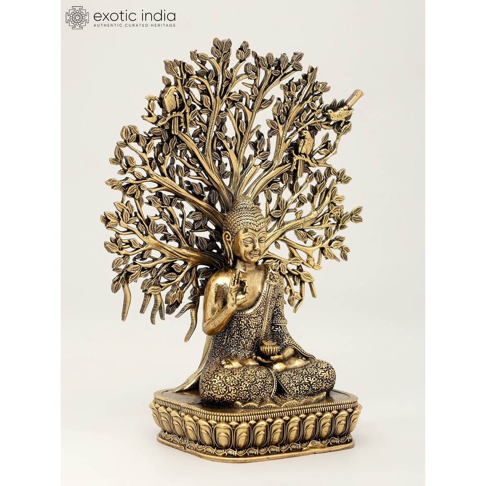 Superfine 6 "ลอร์ดพระพุทธรูปนั่งอยู่ใต้รูปปั้นรูปปั้นทองเหลืองต้นโพธิ์