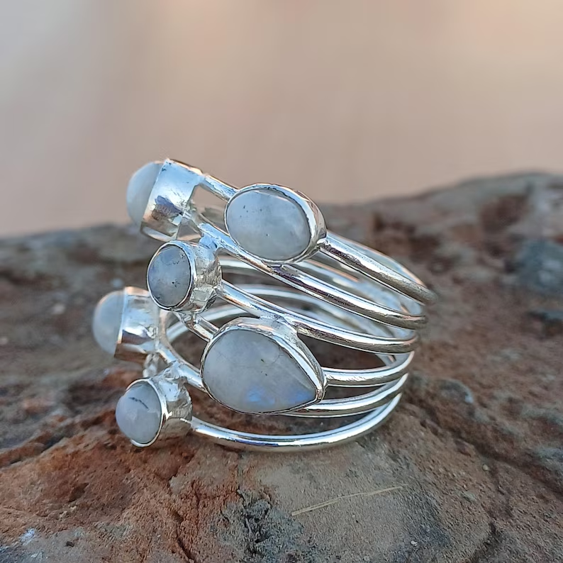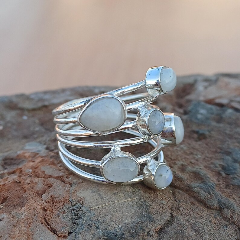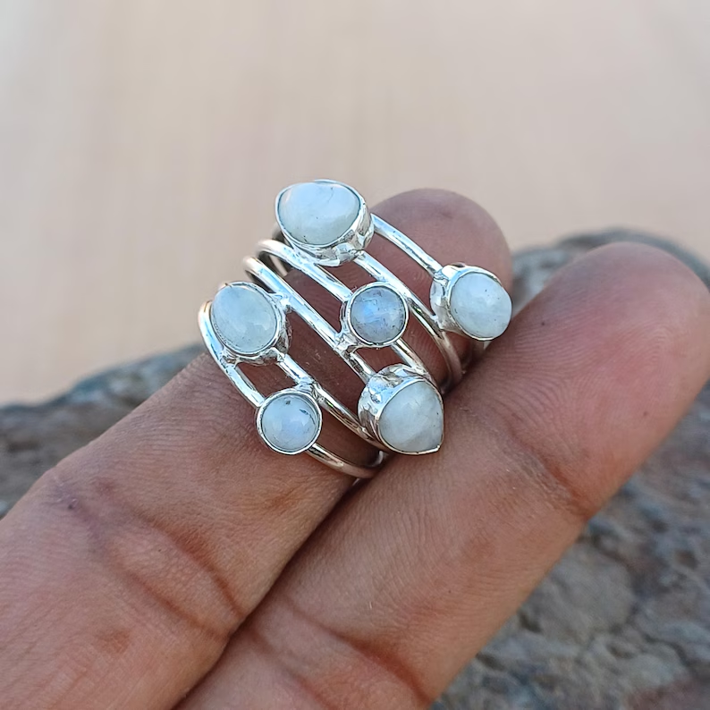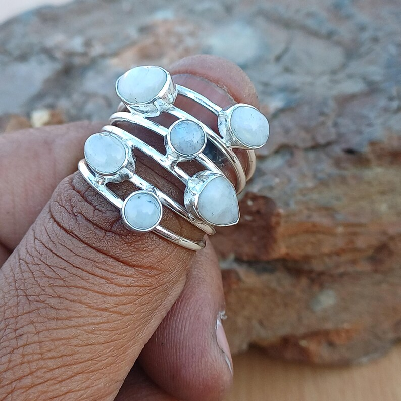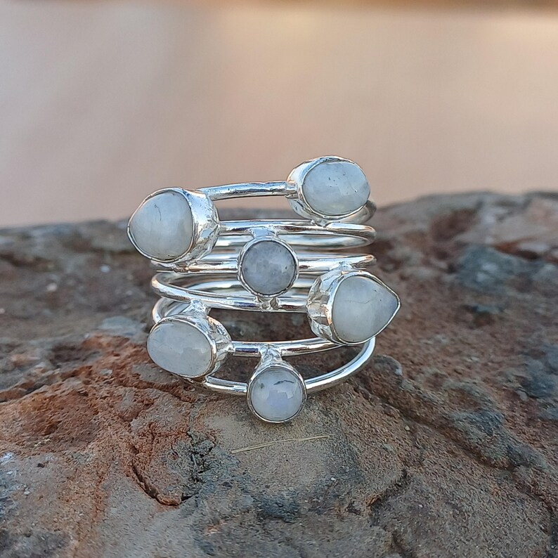 แหวนมูนสโตนสีรุ้งหลากสีธรรมชาติคุณภาพดีเยี่ยม925เงินแท้สำหรับเป็นของขวัญหมั้นแต่งงานหรือปาร์ตี้จำนวนมาก