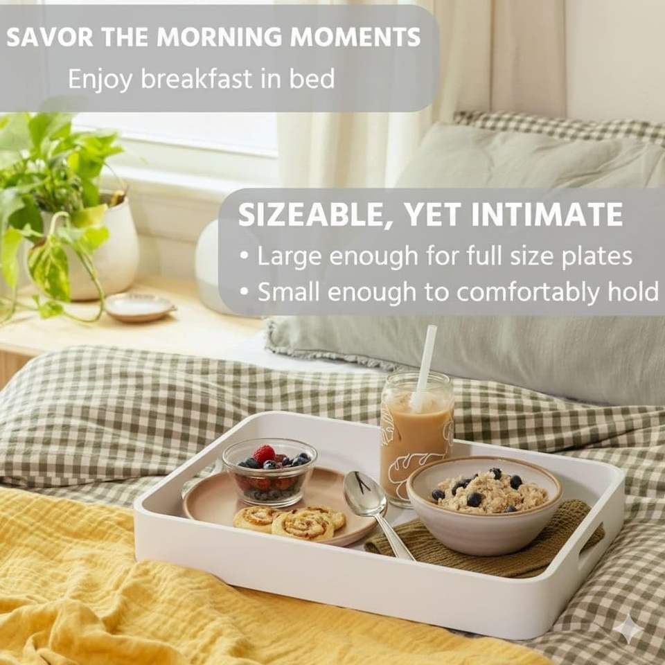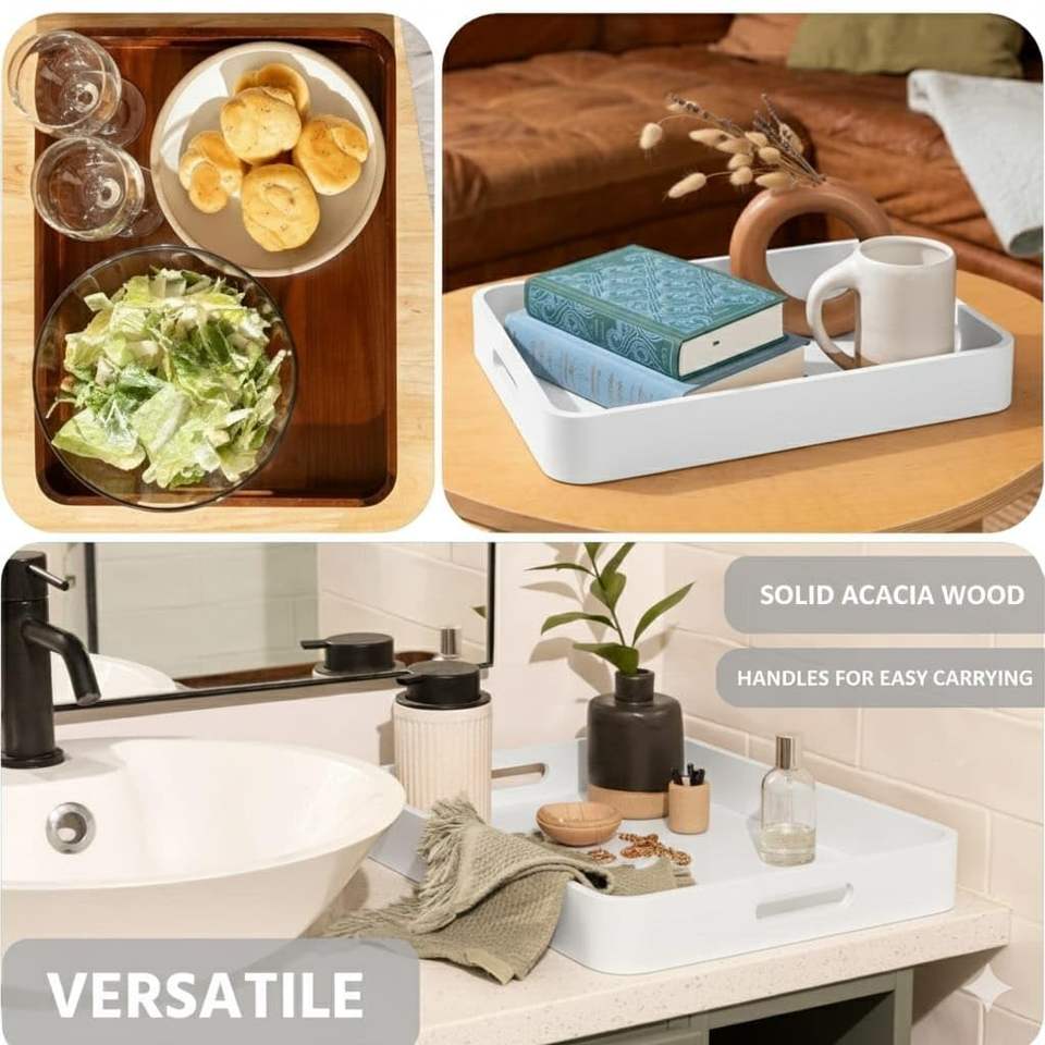 ถาดเสิร์ฟไม้คุณภาพเยี่ยม สีขาว สำหรับโต๊ะอาหาร ถาดเสิร์ฟอาหารเช้า กาแฟ ของหวาน มีจำหน่าย