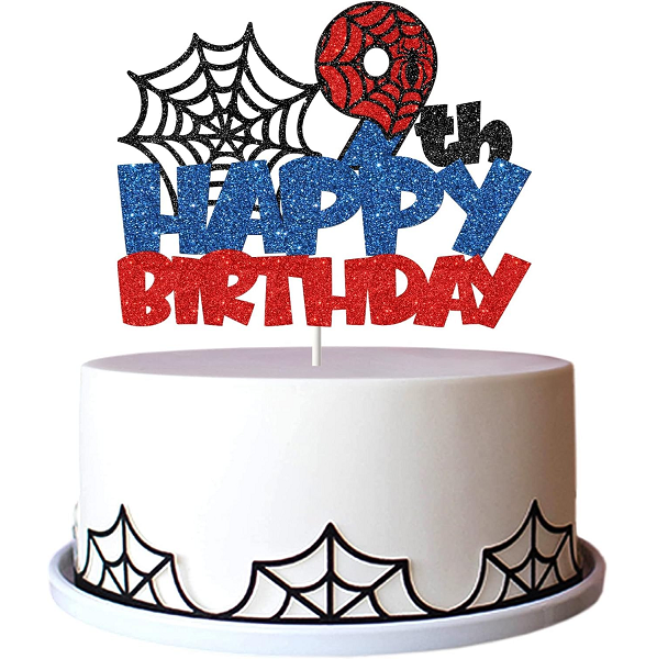 ยอดมนุษย์เค้กวันเกิด9th แห่งความสุขของซูเปอร์ฮีโร่ของตกแต่งจำนวนเก้าแวววาวสำหรับเด็กผู้ชายเด็กซูเปอร์ฮีโร่เว็บธีมปาร์ตี้