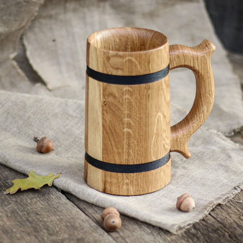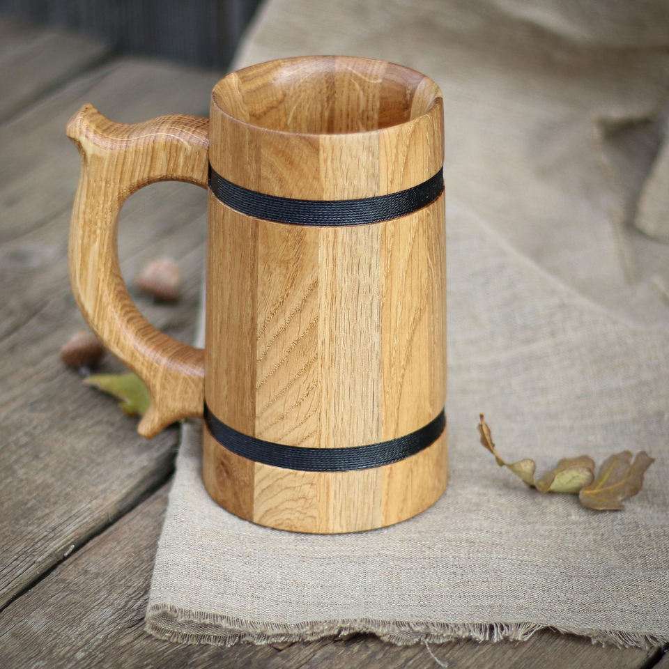 แก้วเบียร์ไม้ธรรมชาติสไตล์วินเทจพร้อมที่จับแก้วกาแฟในห้องครัวบ้านเครื่องดื่มร้อนและเย็นขนาดใหญ่ของขวัญที่ดีเลิศ