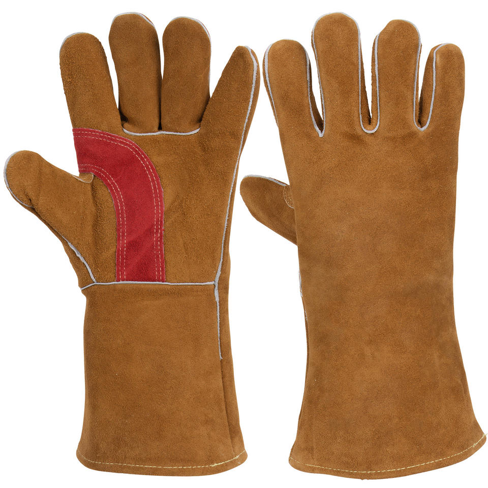 ถุงมือเชื่อมหนังวัวที่เหนือกว่าสำหรับใช้ในห้องครัวพร้อมข้อมือเพื่อความปลอดภัยและทนความร้อนสำหรับกลางแจ้ง