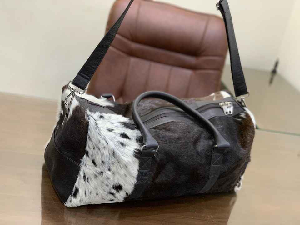 กระเป๋าเดินทางหนังวัวแท้เกรดพรีเมียม ลายขนสัตว์ สไตล์ตะวันตก รุ่น LHDB-0167