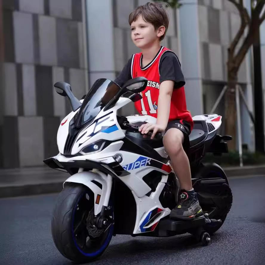 มอเตอร์ไซค์ไฟฟ้าสำหรับเด็กอายุ 3-10 ปี รุ่น Superior ของเล่นแบบชาร์จไฟได้สำหรับเด็กชายและเด็กหญิง พร้อมดีเทลสีน้ำเงิน