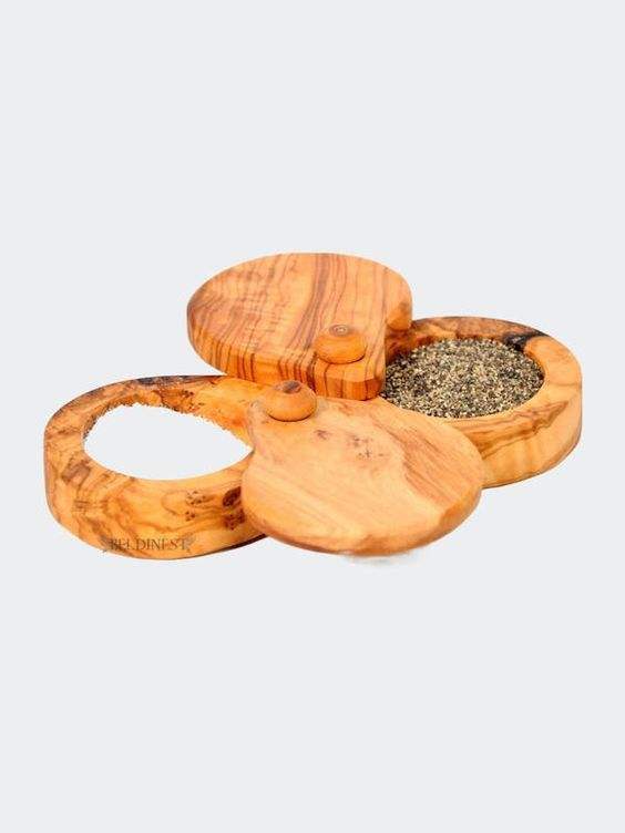 ชามใส่น้ำตาลและเกลือทำด้วยมือทำจากไม้สีน้ำตาลเข้ม3ชั้นภาชนะใส่น้ำตาลทรงกลมความต้องการสูง