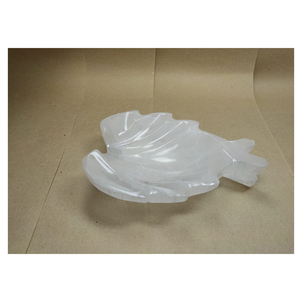 Selenite ชามรูปใบไม้ขนาด5-6นิ้วคริสตัลแกะสลักด้วยมือที่สวยงามสำหรับตกแต่งเป็นของขวัญสำหรับการทำสมาธิ
