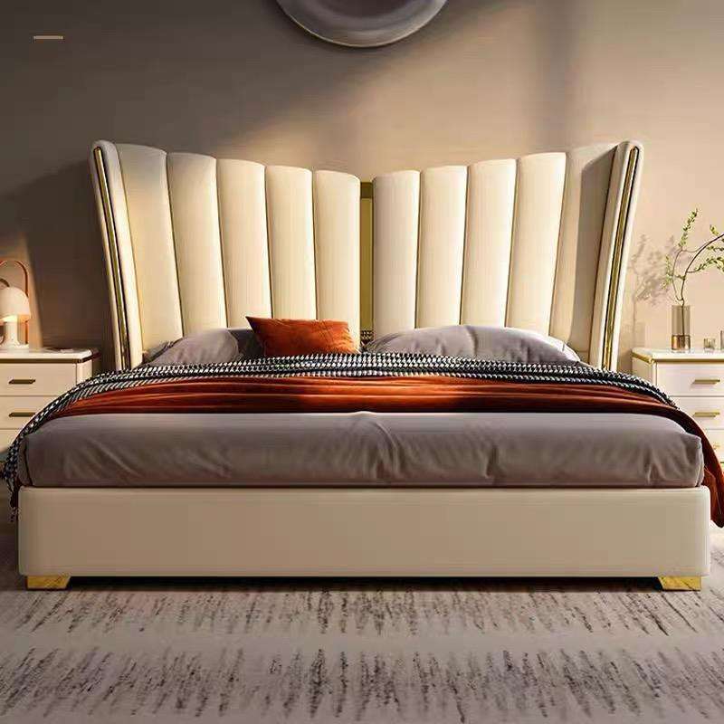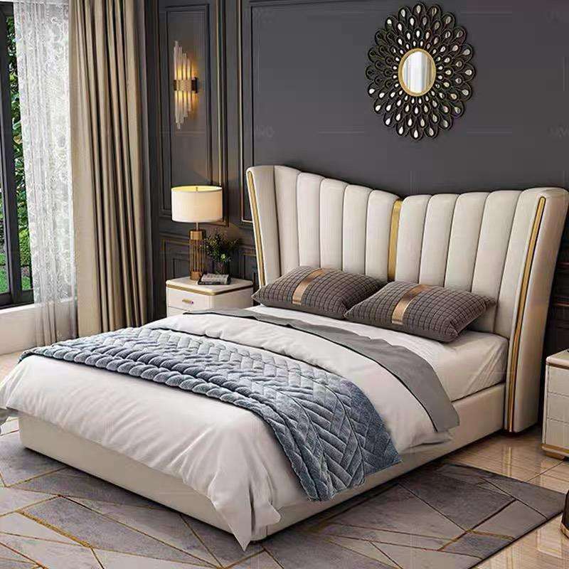 เตียงผ้าขนาดคิงไซส์ชุดห้องนอนโครงไม้เนื้อแข็งรุ่นหรูหราล่าสุด