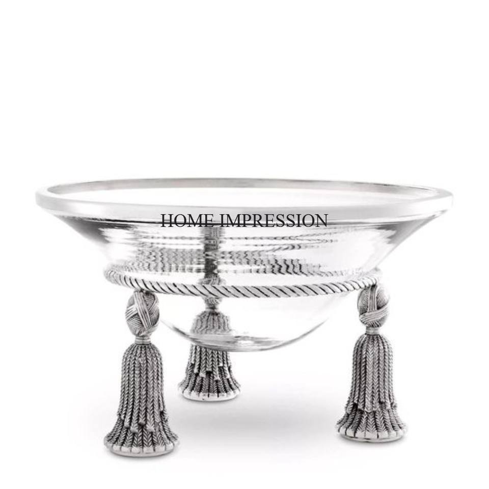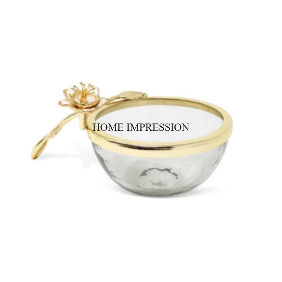 ชามแก้วใสทรงกลมขอบด้านบนเป็นโลหะชุบทองอุปกรณ์สำหรับดีไซน์เนอร์