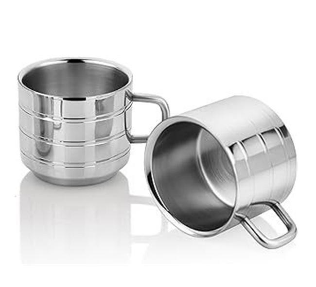 แก้วกาแฟสแตนเลสใช้สำหรับตั้งแคมป์พร้อมด้ามจับเครื่องครัว2ชิ้นถ้วยเดินทาง