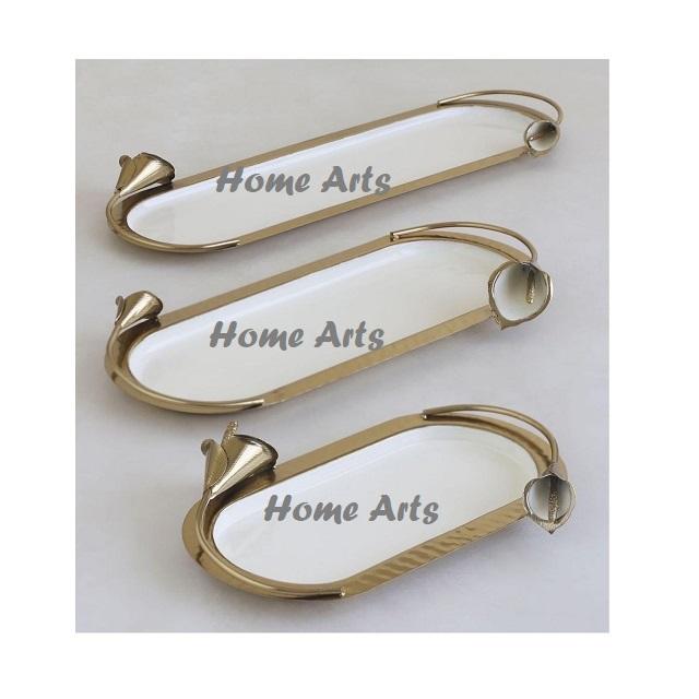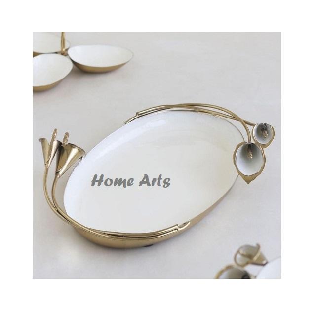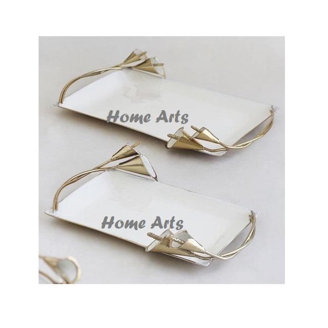 Superior Quality Customized Size Serving Tray Latest Design White and Gold Color Dessert Serving Tray for Sale