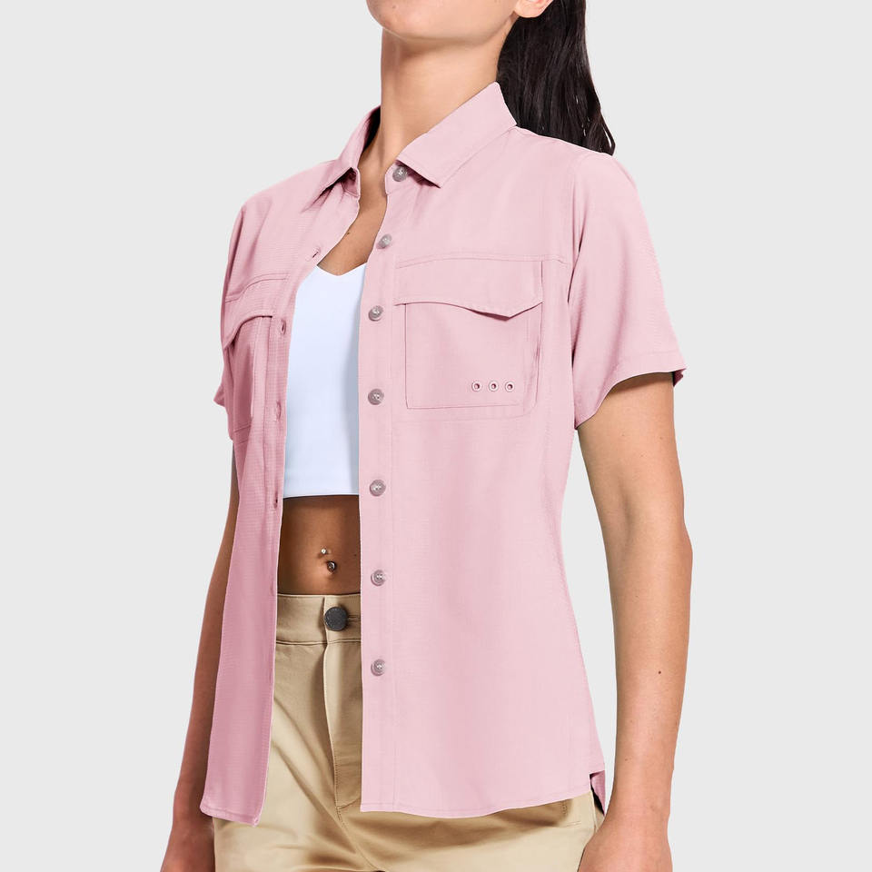 เสื้อตกปลาคุณภาพเยี่ยม ปกพับได้ เนื้อผ้านุ่ม ระบายอากาศดี เสื้อตกปลาแบบเรียบสำหรับผู้หญิง