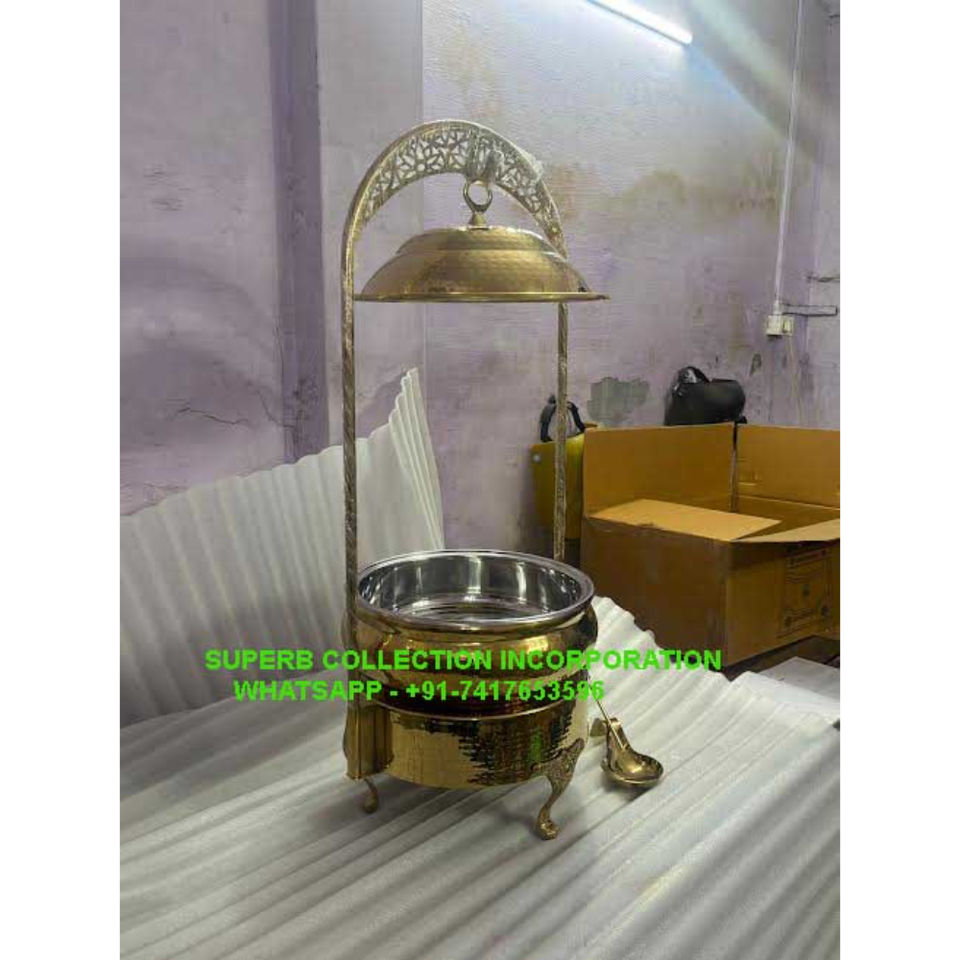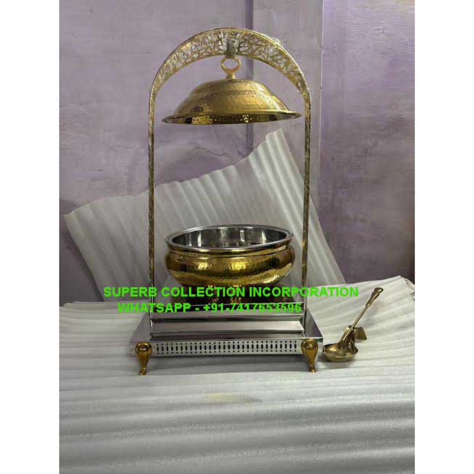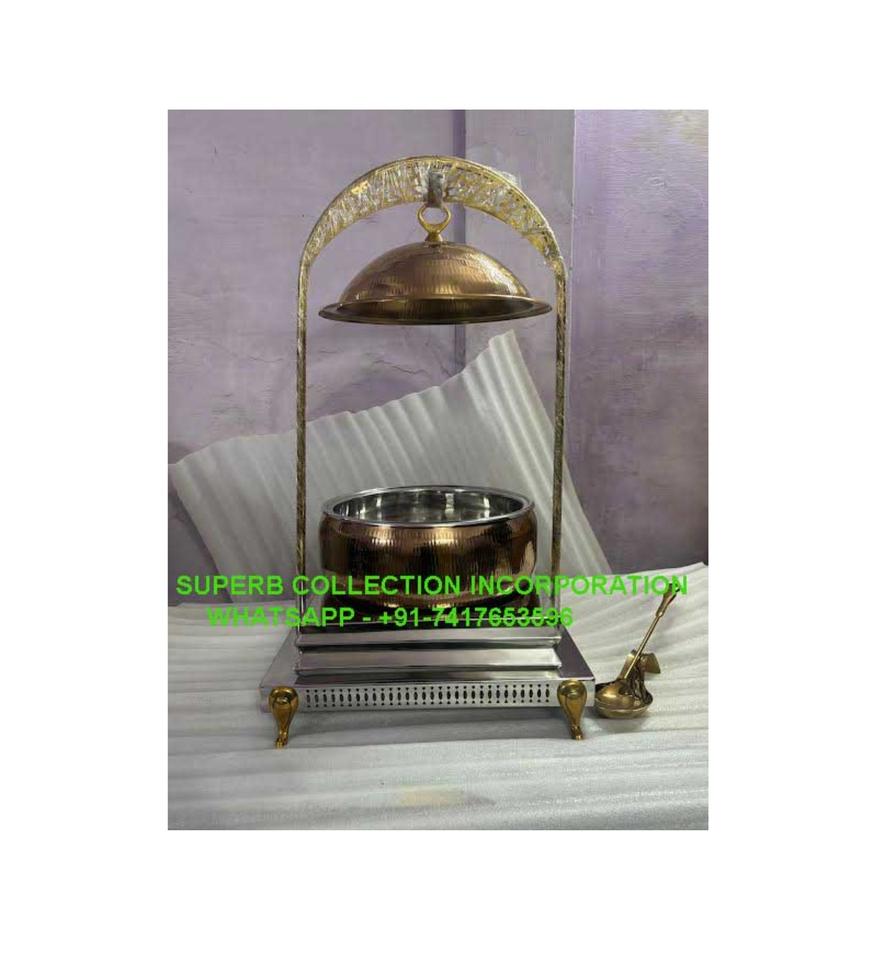 Superior Quality Golden Copper Hammered Round Chafing Dish With Stand For Hotel & Buffet Dish For Catering & Events