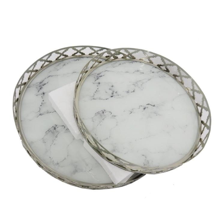 ถาดโลหะสำหรับโต๊ะอาหารและกาแฟถาดเสิร์ฟอาหารเช้าและกาแฟดีไซน์ทำด้วยมือ