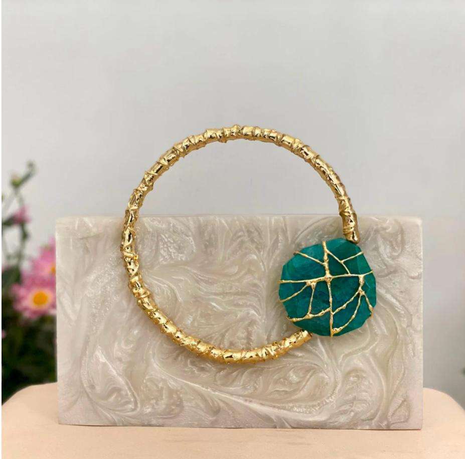 กระเป๋าคลัทช์ทำมือสีขาวเรซินด้ามจับสีทองสำหรับผู้หญิง H Industries ราคาต่ำของขวัญแต่งงานอินเดีย