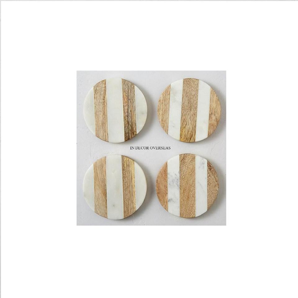 ชุดที่รองแก้ววางกลางโต๊ะ4ชิ้นทำจากไม้มะม่วงและหินอ่อนสีขาวดีไซน์แฟนซีอันเป็นเอกลักษณ์