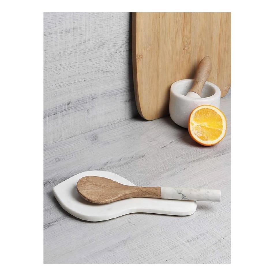 Marble Wood Ladle Rest Spoon Holder