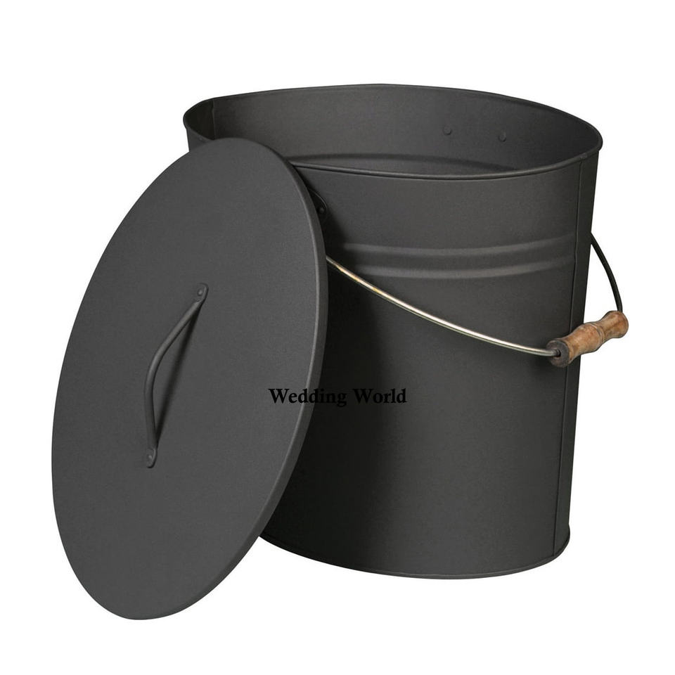 ถังใส่ฟืนโลหะคุณภาพเยี่ยม ดีไซน์สร้างสรรค์ ทำมือ ถังขี้เถ้า สีดำ รูปทรงวงรี ถังถ่านหินโลหะที่ดีที่สุด