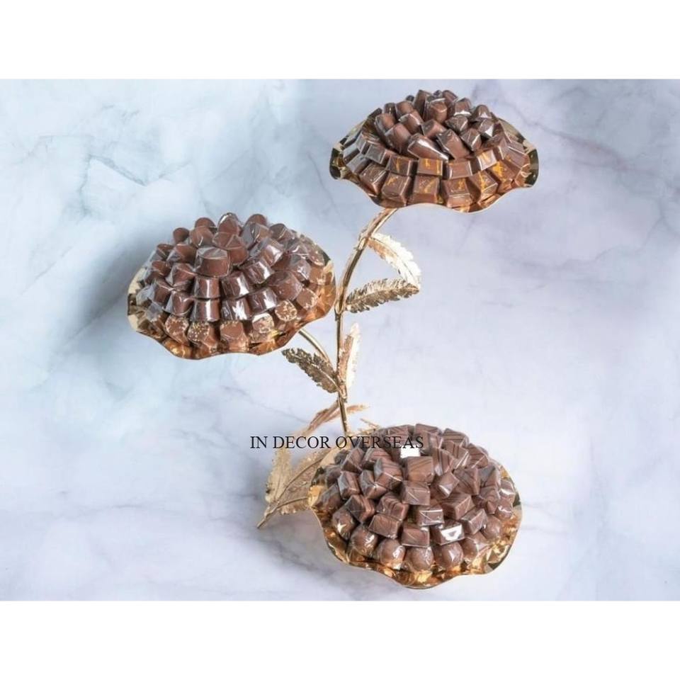 ถ้วยใส่ช็อคโกแลตและขนมหวานชุบทองเกรดสูงเสิร์ฟหรูหราทำจากโลหะ