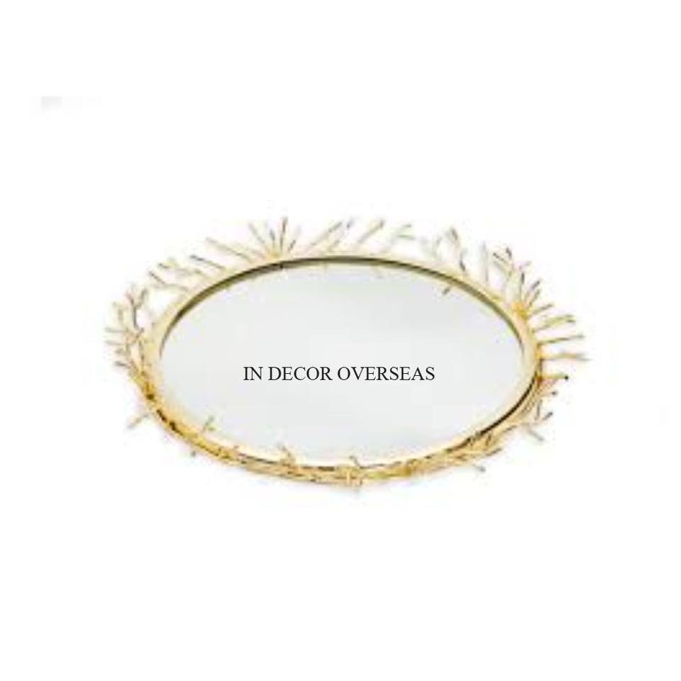 ถาดเสิร์ฟทรงกลมกระจกพร้อมโลหะชุบทองอุปกรณ์ครัวร้านอาหารและโรงแรมดีไซน์โดดเด่น
