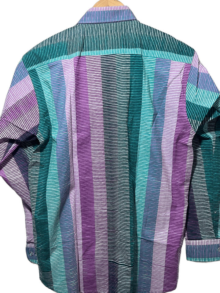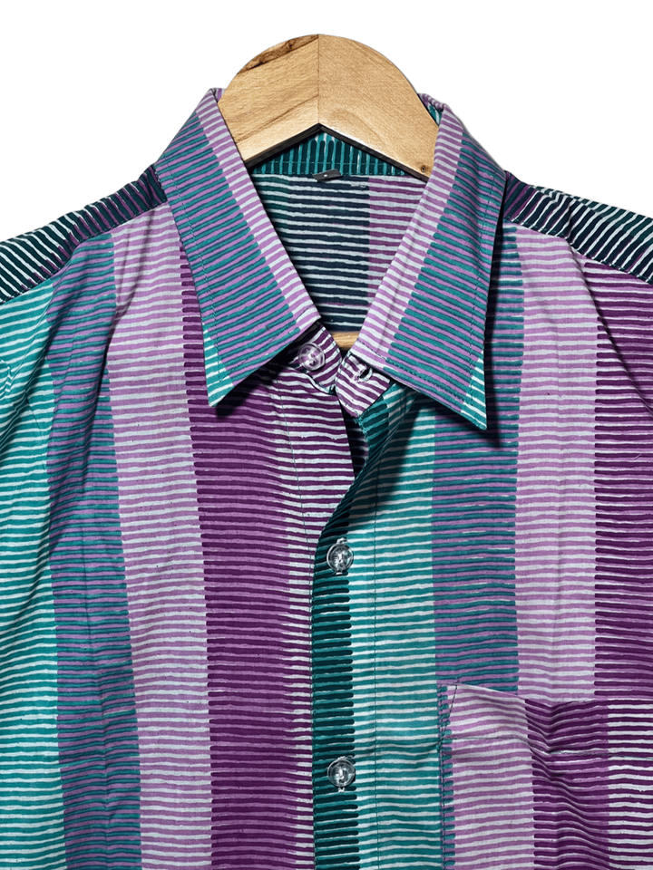 เสื้อเชิ้ตแขนยาวผู้ชายคุณภาพเยี่ยม ผ้าฝ้าย 100% หลากสี ลายพิมพ์บล็อกมือ ลายทาง | การออกแบบ | การจัดหาสินค้าจำนวนมาก