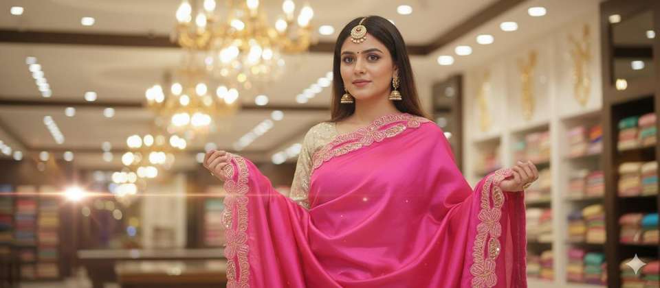ลูกไม้ปักโพลีเอสเตอร์พร้อมลายดอกไม้เงาเนื้อนุ่มเหมาะสำหรับส่าหรีและชุดเดรสแบบดั้งเดิม