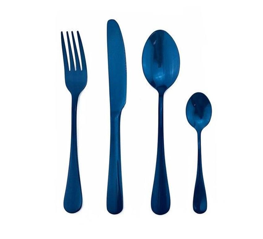 ชุดเครื่องใช้บนโต๊ะอาหารสแตนเลสสีด้านพร้อมด้วยด้ามจับโลหะประกอบด้วยช้อนส้อมมีดสีฟ้า4ชิ้น