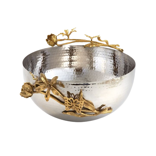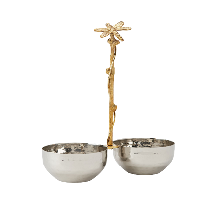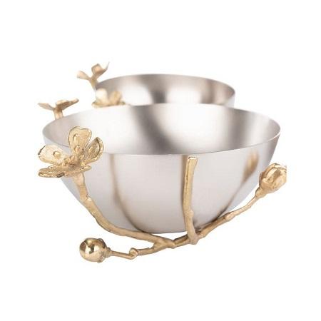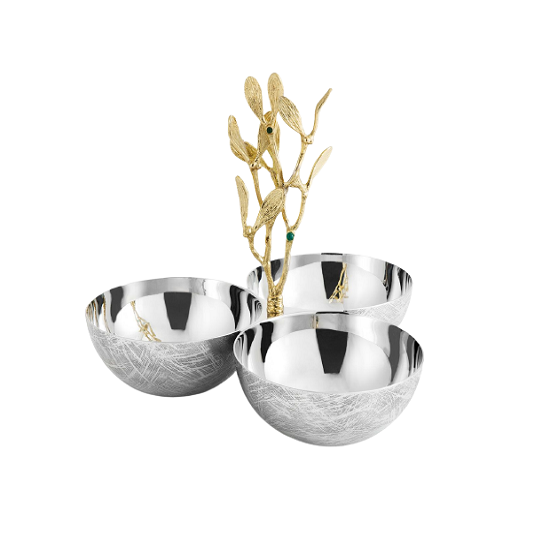 ชามอาหารสแตนเลสพร้อมขาตั้งทรงกลมสีเงินและสีทองวันที่เสิร์ฟ