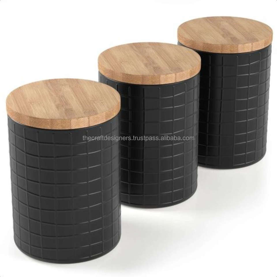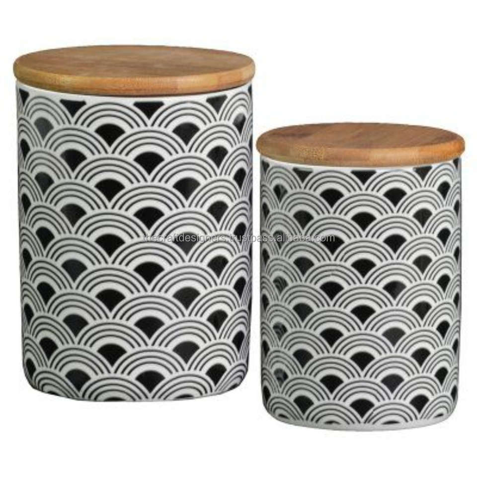 ชุดกระปุกเก็บ2ชิ้นพิมพ์ลายน้ำตาลชาพร้อมฝาไม้ตกแต่งห้องครัว