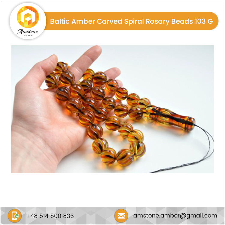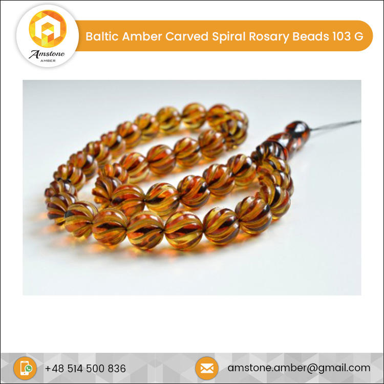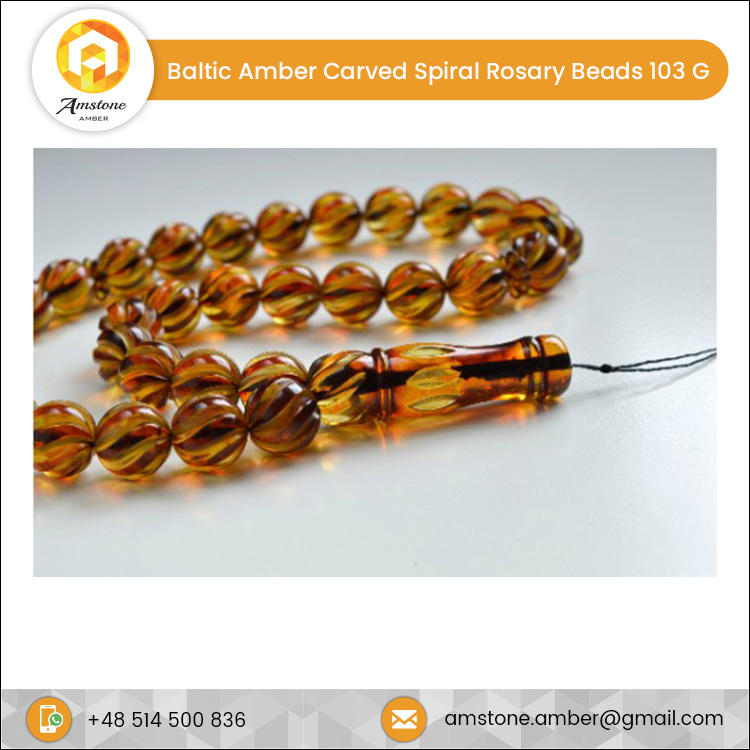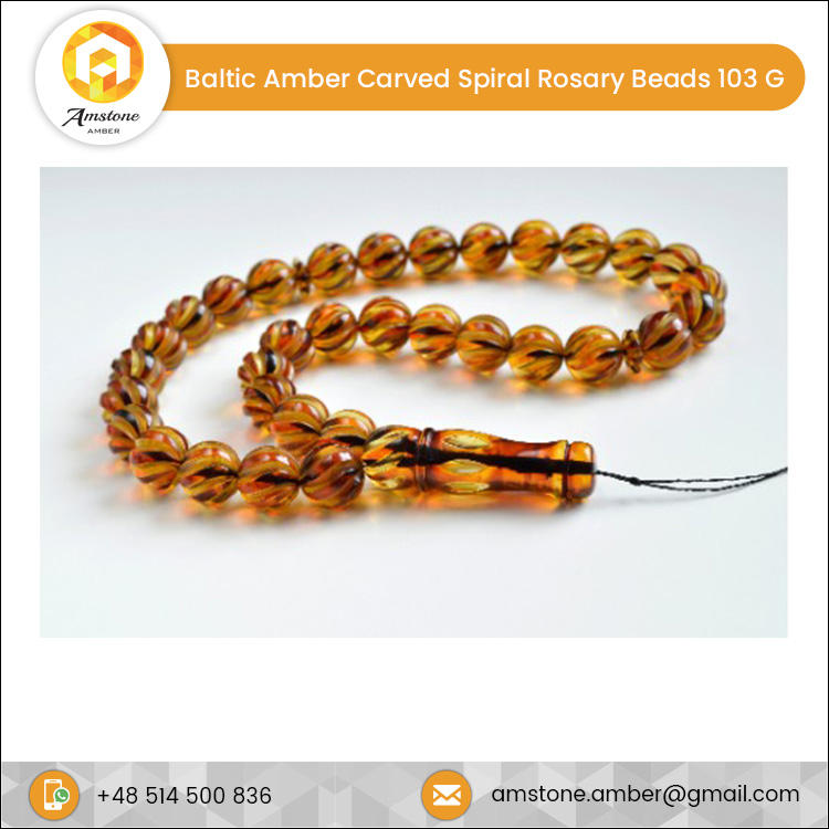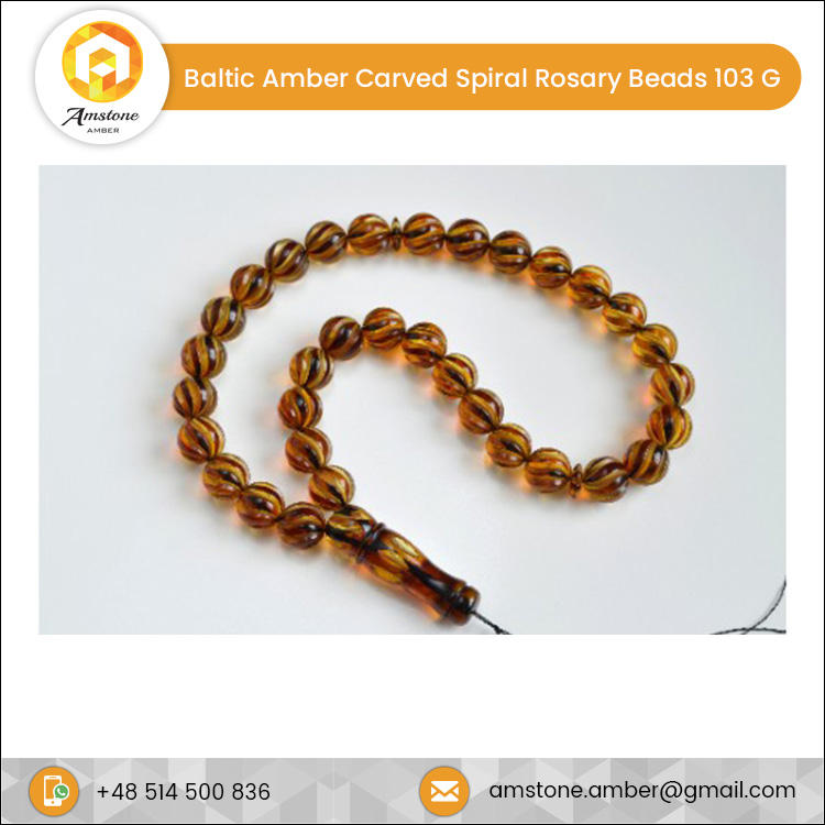 Model Number:Baltic Amber Carved Spiral Rosary Beads 103 G