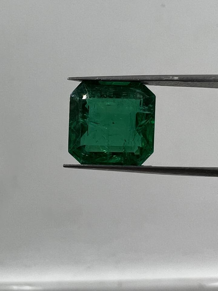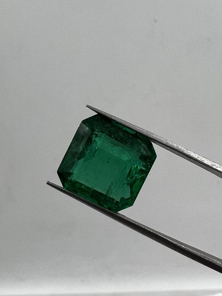 กะรัต5.71เจียระไนทรงสี่เหลี่ยมจากธรรมชาติไม่ผ่านการบำบัดสำหรับเครื่องประดับชั้นสูงสีเขียวสดใสเกรดพรีเมี่ยม