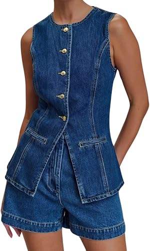 ชุดเซ็ตเสื้อเชิ้ตยีนส์และกางเกงขาสั้นสำหรับผู้หญิง