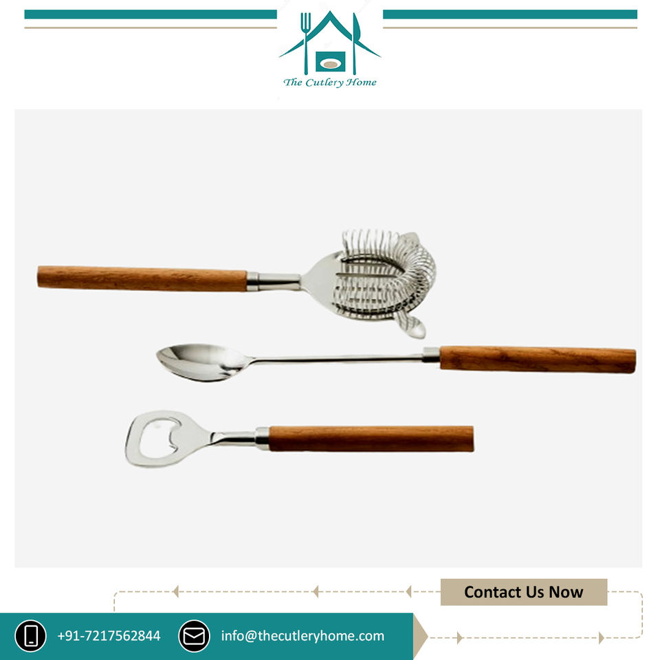 ชุดเครื่องมือบาร์สเตนเลสอย่างยั่งยืนด้ามจับไม้สำหรับงานปาร์ตี้ที่มาจากอินเดีย