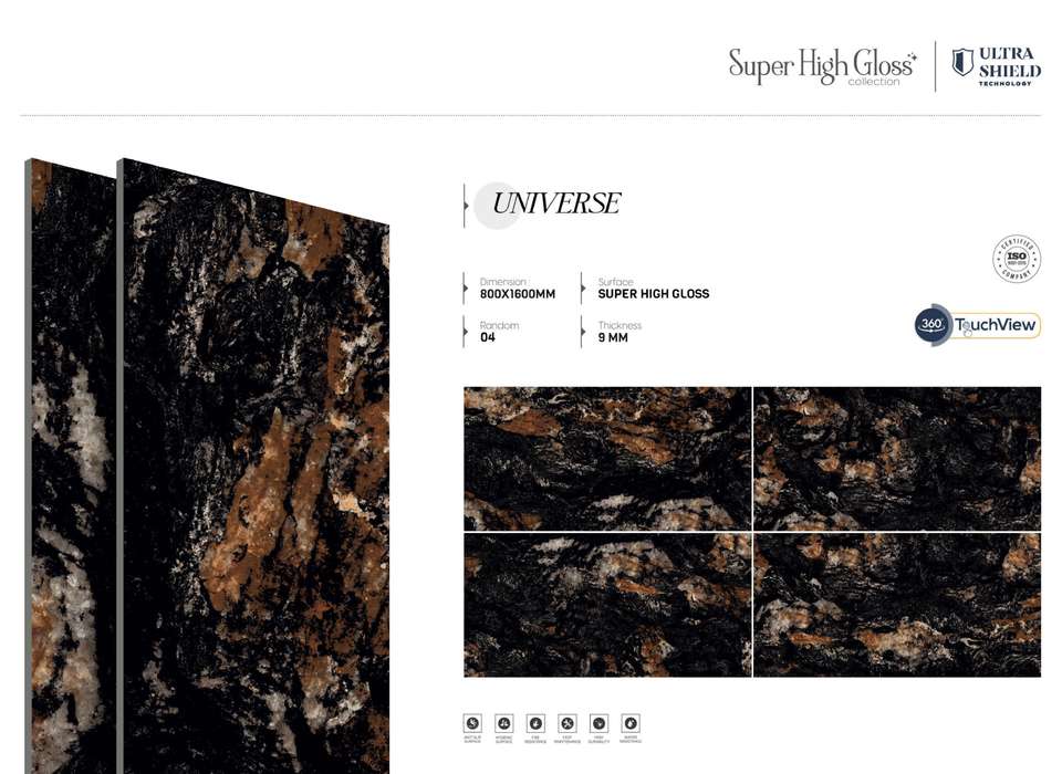 กระเบื้องพอร์ซเลนซูพีเรียร์ไชน์ ขนาด 800x1600 1200x1800 750x1500 มม. ออกแบบมาเพื่อเติมเต็มความสว่างทันสมัยในสภาพแวดล้อมทางสถาปัตยกรรม