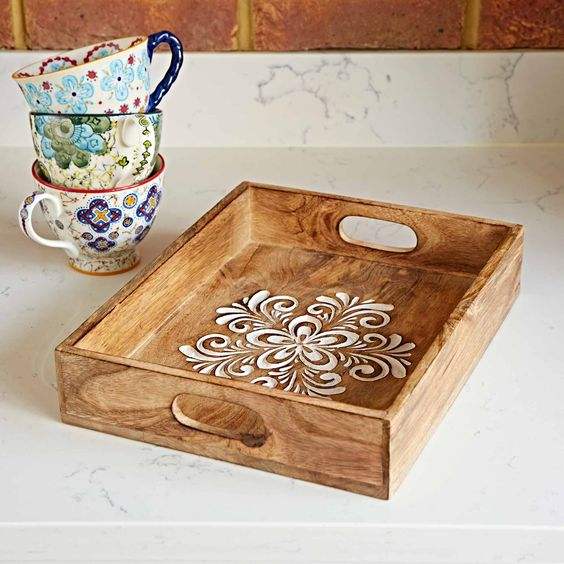 ถาดเสิร์ฟกาแฟทรงรีสำหรับอุปกรณ์ครัวถาดเสิร์ฟทำจากไม้ดีไซน์เป็นเอกลักษณ์