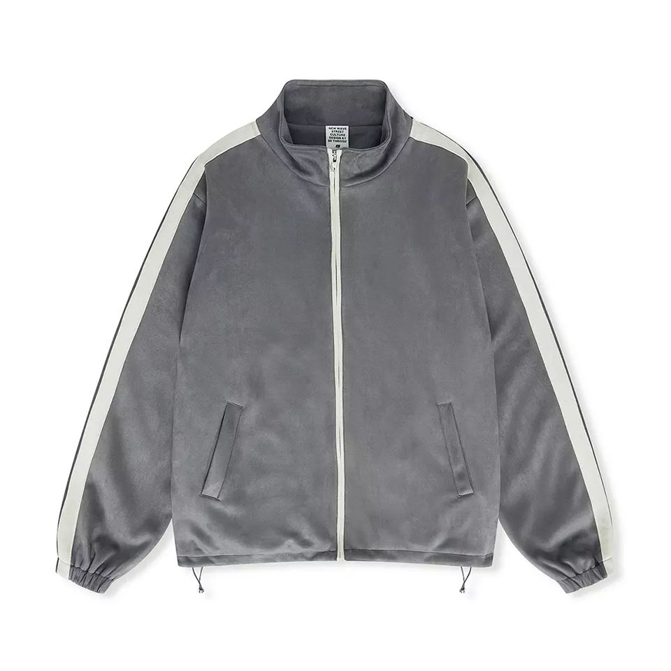 แจ็กเก็ตเลตเตอร์ตัวแทนผ้าวูลแบบบางลายนูนโลโก้คอตั้งแขนหนังสำหรับฤดูหนาว
