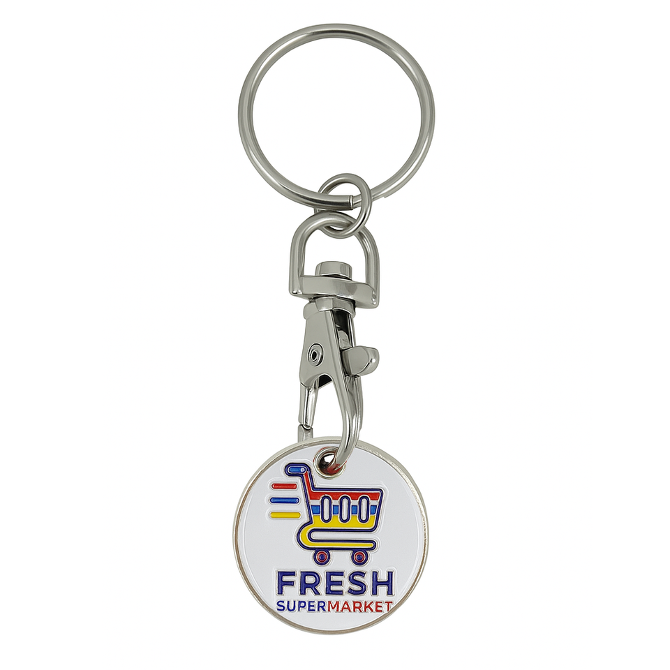 เหรียญใส่รถเข็นซุปเปอร์มาร์เก็ต โลโก้แบรนด์ตามสั่ง ผลิตจากโลหะผสมสังกะสี ดีไซน์การ์ตูนทันสมัย น้ำหนักเบา กันน้ำ