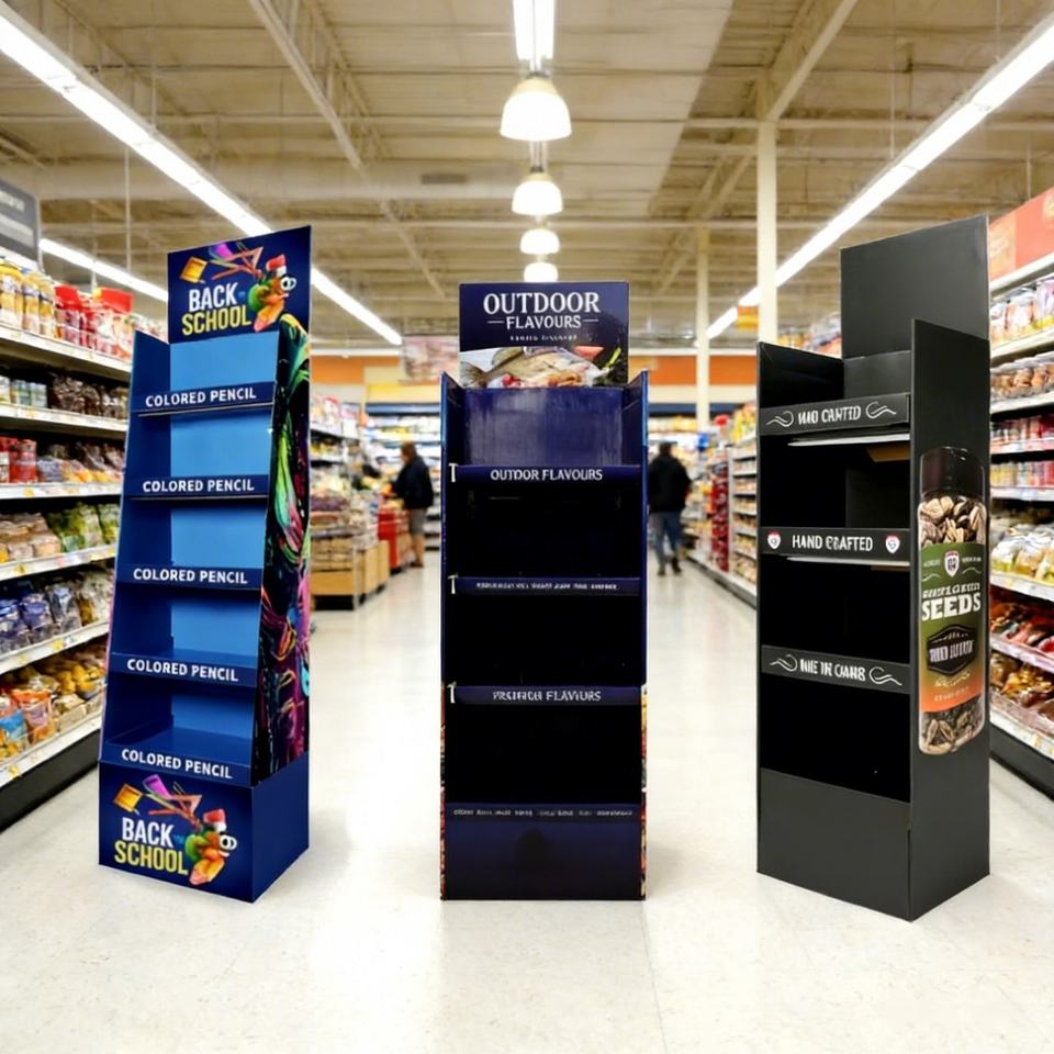 Supermarket Display Stands Racks for Potato Chips Coffee Bags Chocolate Advertising Custom Retail Cardboard Floor Display Stand