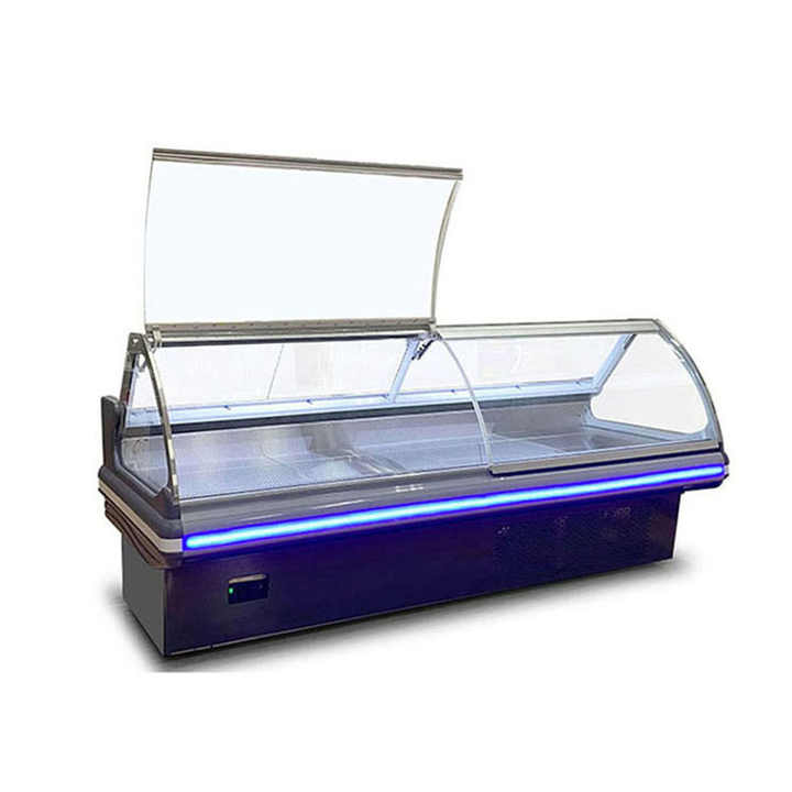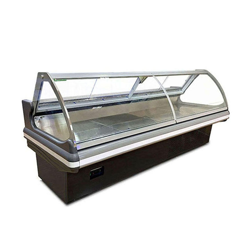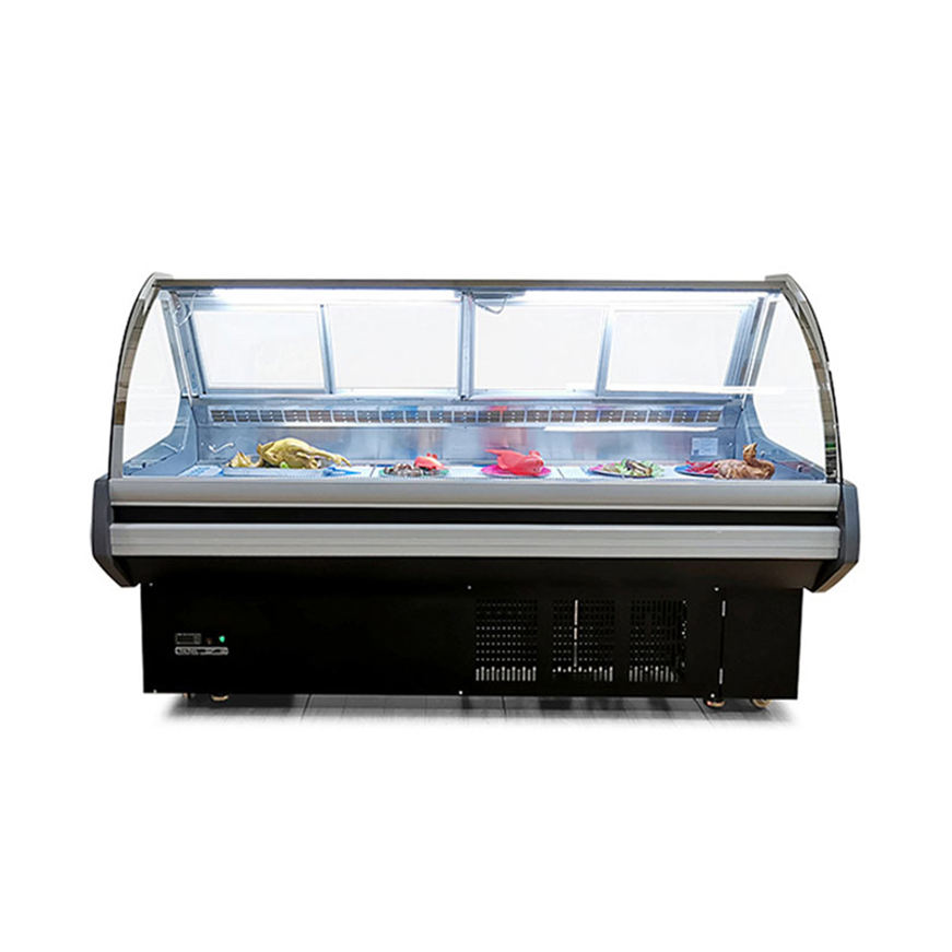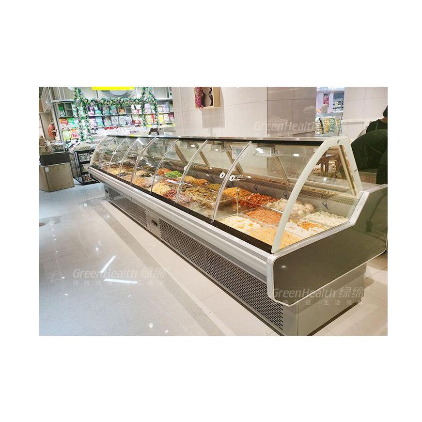 ตู้โชว์อาหารอุ่นร้อนแบบกระจกสำหรับซุปเปอร์มาร์เก็ต ตู้แช่เย็นแสดงอาหารประเภทเนื้อสัตว์