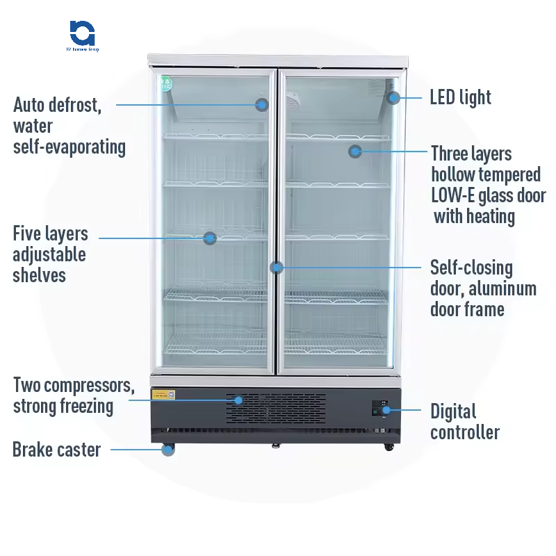ตู้แช่แข็งแบบติดผนัง 2 ประตู สำหรับอาหารแช่แข็ง ระบบทำความเย็นแบบลมเดี่ยว สำหรับร้านค้าปลีกในซูเปอร์มาร์เก็ต