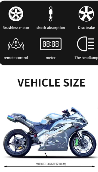 มอเตอร์ไซค์แข่งซูเปอร์พาวเวอร์ 200 มม. 96 โวลต์ 150 แอมป์ชั่วโมง มอเตอร์ไซค์ไฟฟ้าความเร็วสูงพร้อมระบบควบคุมระบายความร้อนด้วยน้ำ ความเร็ว 200 กม./ชม.+