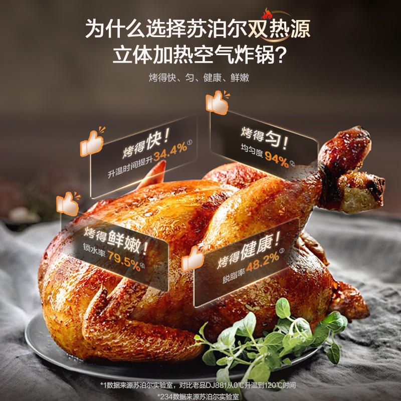 ซูปอร์ แอร์ฟรายเออร์ 6 ลิตร หม้อทอดไร้น้ำมันแบบสองแหล่งความร้อน เคลือบเซรามิกรูปทรงกลม ไม่ต้องพลิกกลับ หม้อทอดไอน้ำแบบมองเห็นได้