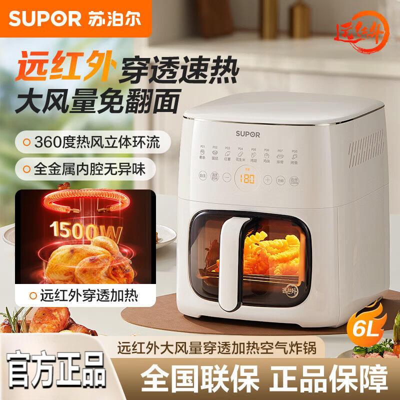 ซูปอร์ แอร์ฟรายเออร์ 6 ลิตร เครื่องทอดแบบมองเห็นได้ พร้อมเคลือบเซรามิกอัตโนมัติเต็มรูปแบบ ดีไซน์ทรงสี่เหลี่ยม สำหรับใช้ในครัวเรือน