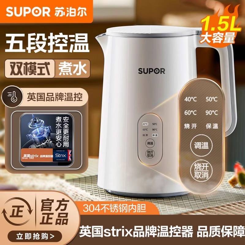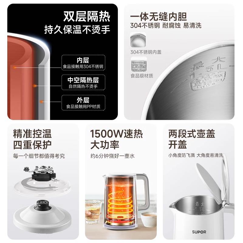 กาต้มน้ำไฟฟ้าซูปอร์ 1.5 ลิตร สแตนเลสสตีล ปิดเครื่องอัตโนมัติ รักษาความร้อน กาต้มน้ำอเนกประสงค์สำหรับใช้ในครัวเรือน