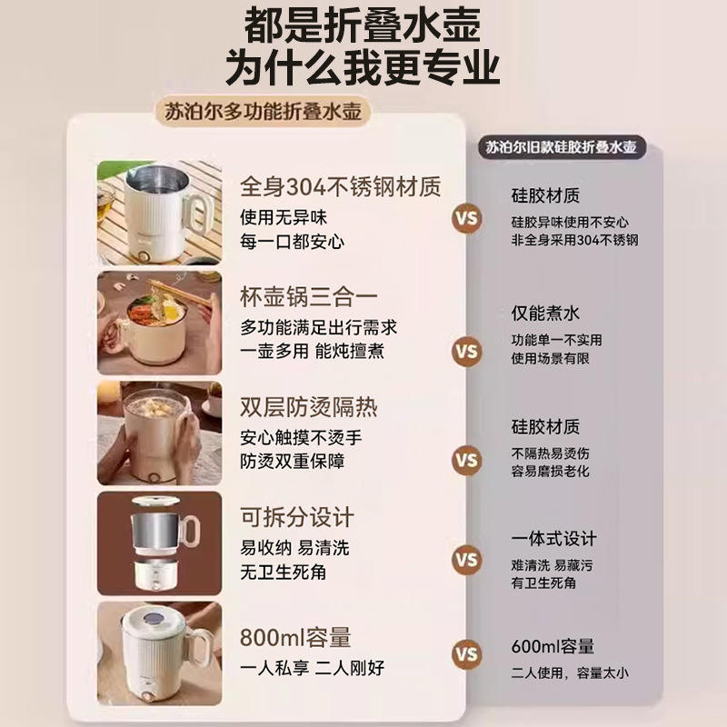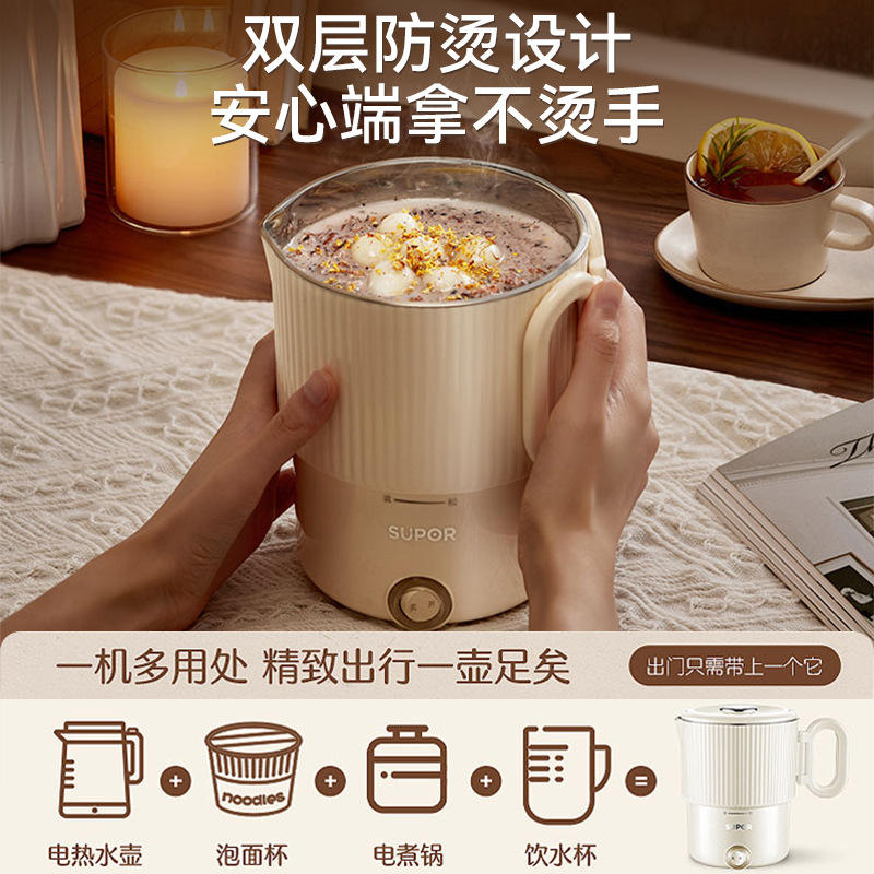 กาต้มน้ำไฟฟ้าซูปอร์ 1 ลิตร สแตนเลสสตีลขนาดเล็ก พร้อมระบบปิดอัตโนมัติ สำหรับใช้ในบ้านและการเดินทาง